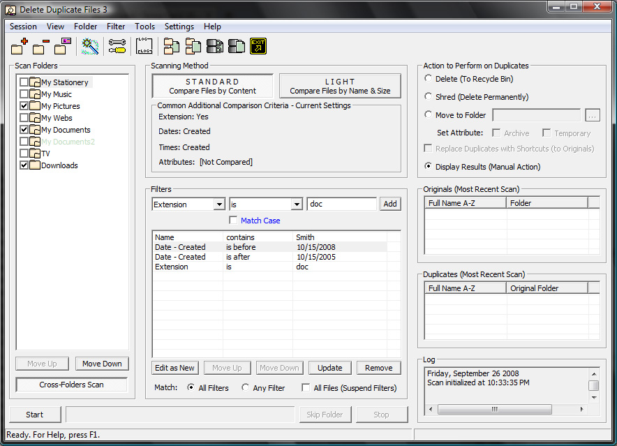• Light scanning method - Compare files by names, sizes, tags and other criteria