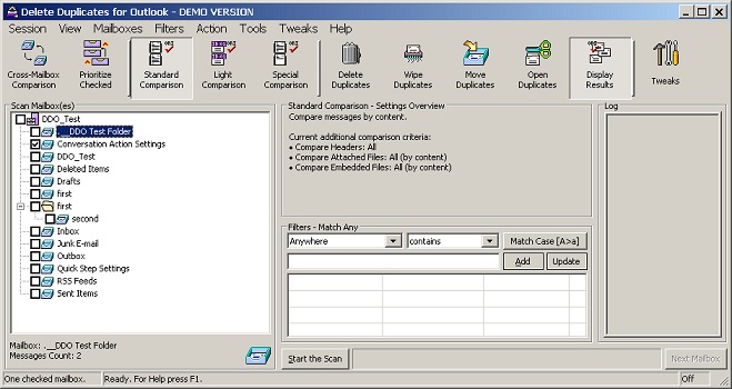 • Filters - Will let you narrow and speed up the search (by excluding certain message types from comparison)