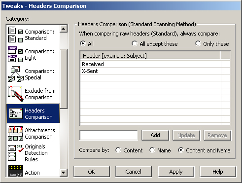 • 3 major scanning methods - Compare messages by content (Standard), by